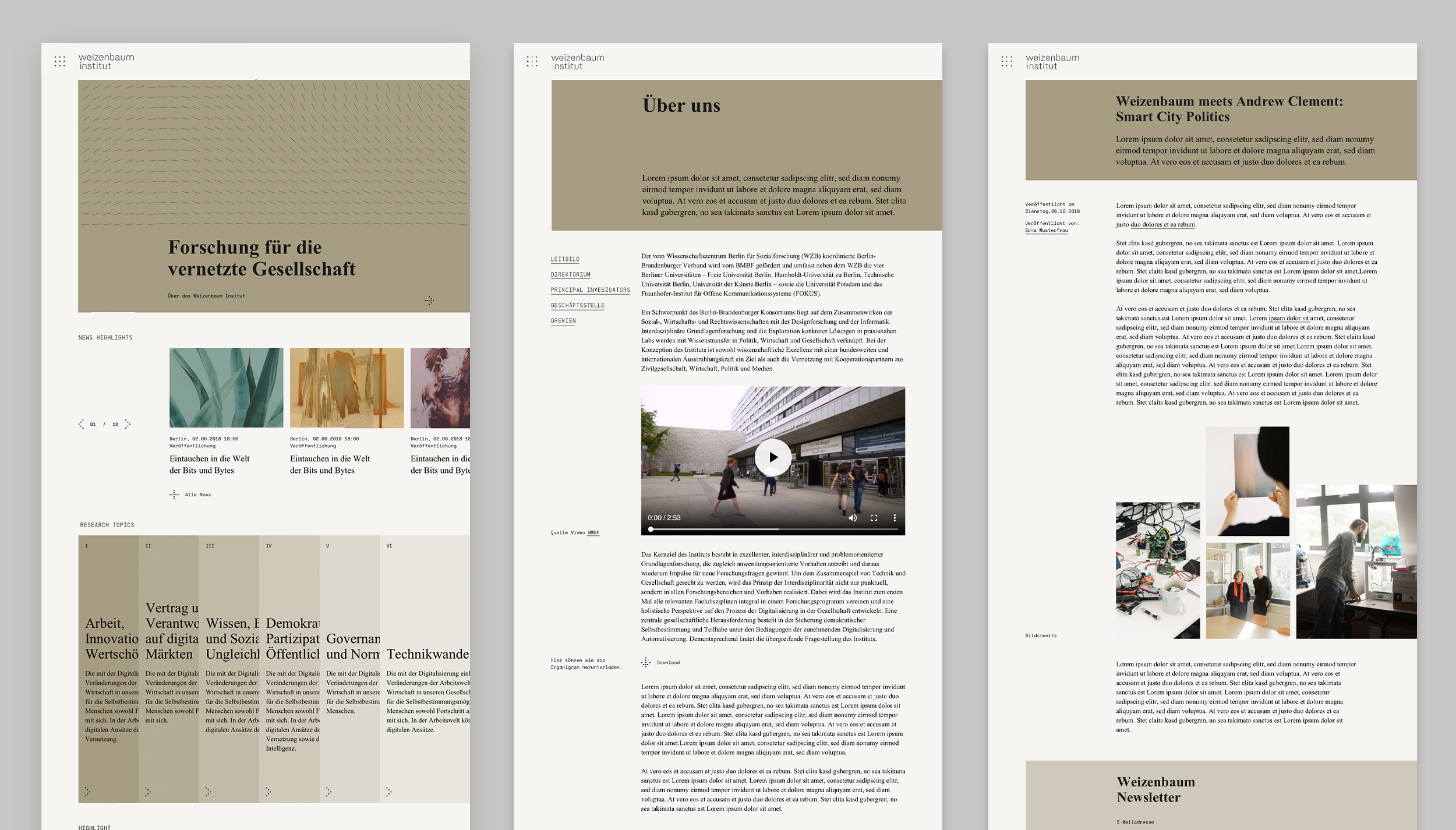 Objectivity, seriousness and depth of content are the core values that guide our work for the Weizenbaum Institute. Classic typography (Times New Roman !) and restrained colours meet playful design elements such as pixel icons or a dynamic key visual.